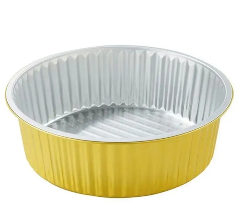Fiambrera Circular dorada de papel de aluminio de 1370ml, 180mm x 80mm con tapa de papel de aluminio para barbacoa para llevar, hornear o contenedor de aluminio