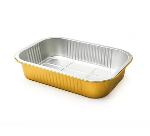 510Ml Gouden Rechthoekige Aluminiumfolie Lunchbox Afhaalbakje Voor Barbecue Gebakken Goederen Opslagcontainers