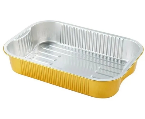 Gouden Rechthoek Aluminiumfolie Lunchbox Milieuvriendelijk Huisdier Plastic Dienblad Voor Barbecue Bakken Of Cake Opslag