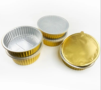 Milieuvriendelijke Gouden Ronde Aluminiumfolie Dienblad Pet Plastic Lunchbox Voor Het Bakken Van Barbecue En Catering